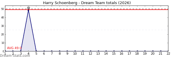 AVG 49.0 13.0 8.0 5.0 2.0 2.0 0.0 0.0 0.0 0.0 1.0