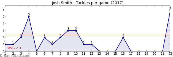| Round | Opponent | Weekly Tackle | Cumulative Tackle | Competition Rank | Weekly Change |