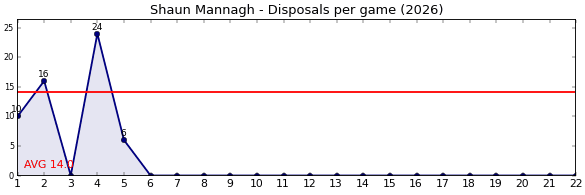 | Round | Opponent | Weekly Disposal | Cumulative Disposal | Competition Rank | Weekly Change |